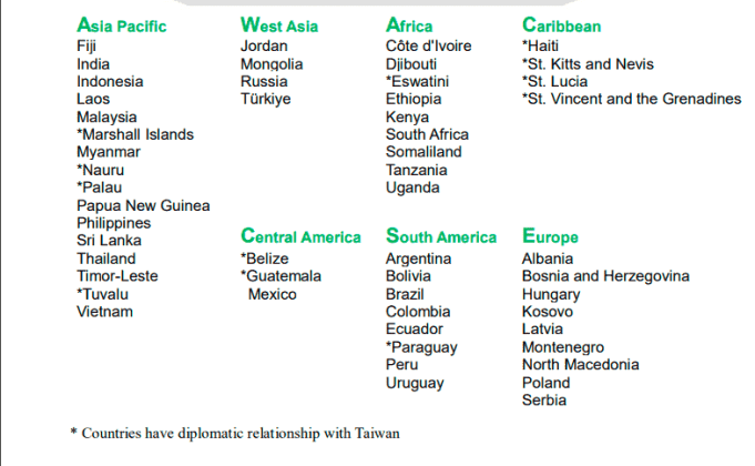 Here is a List of countries eligible countries for the Taiwan ICDF Scholarship 2024: